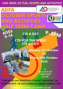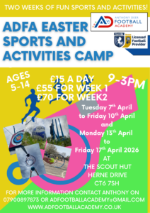 Every Friday night, 6-7pm we take over the whole of Herne Bay’s outdoor pitch. Come and join in and learn new skills, technique and build confidence on the ball.