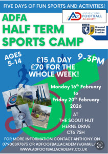 Throughout the school holidays, ADFA offer sports and activity courses for children, boys and girls, aged 4 – 15 years old at The Scout Hut, Herne Drive for all abilities and standards. The majority of courses in the holidays are child led, giving them the opportunity to use their imagination to play games. The coaches are there to help them learn new games and skills and to ensure their safety is adhered to. The courses are held at The Scout Hut, and parents can be safe in the knowledge that there child is being cared for and looked after by our fully trained and CRB Checked coaching staff.